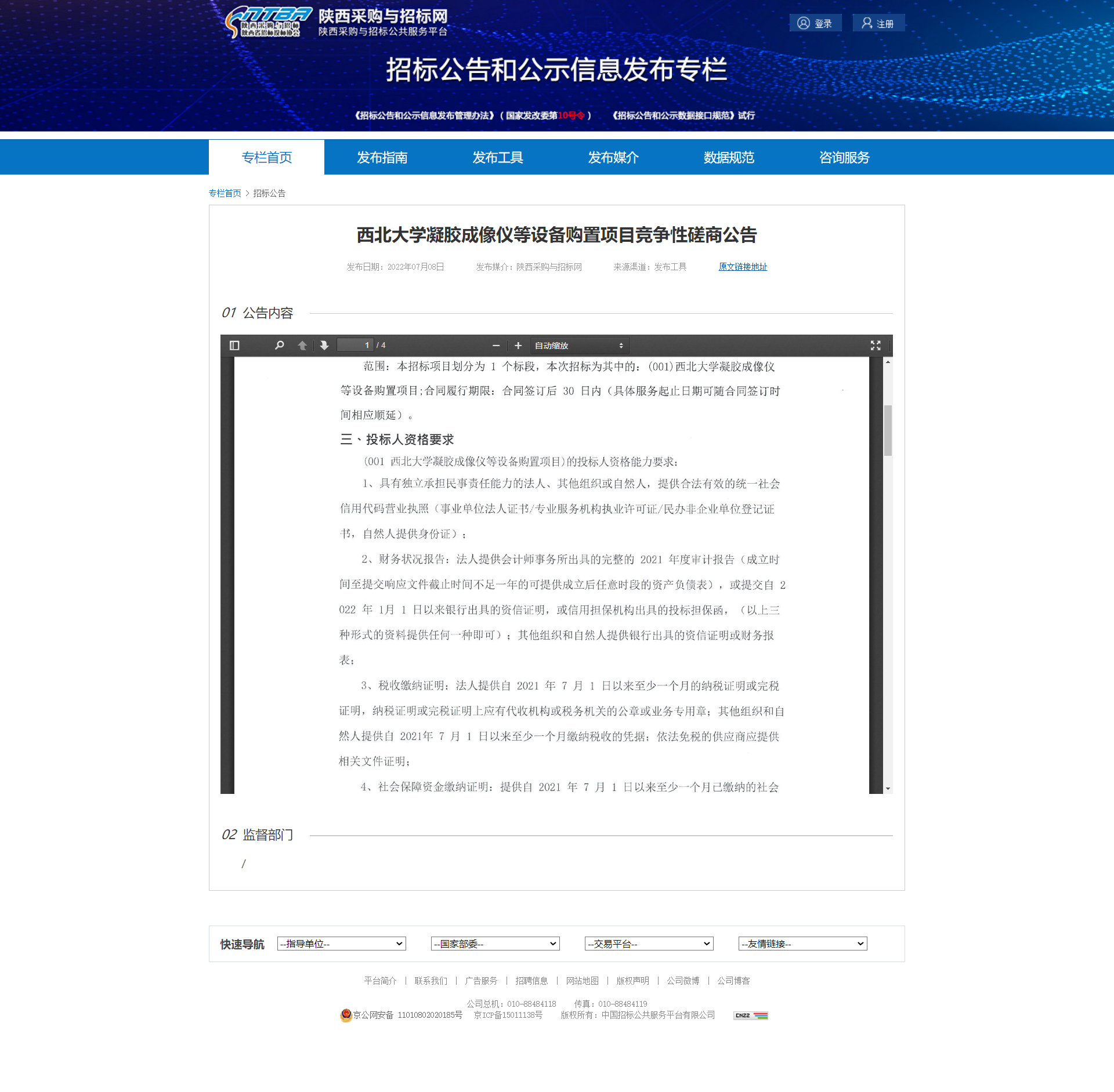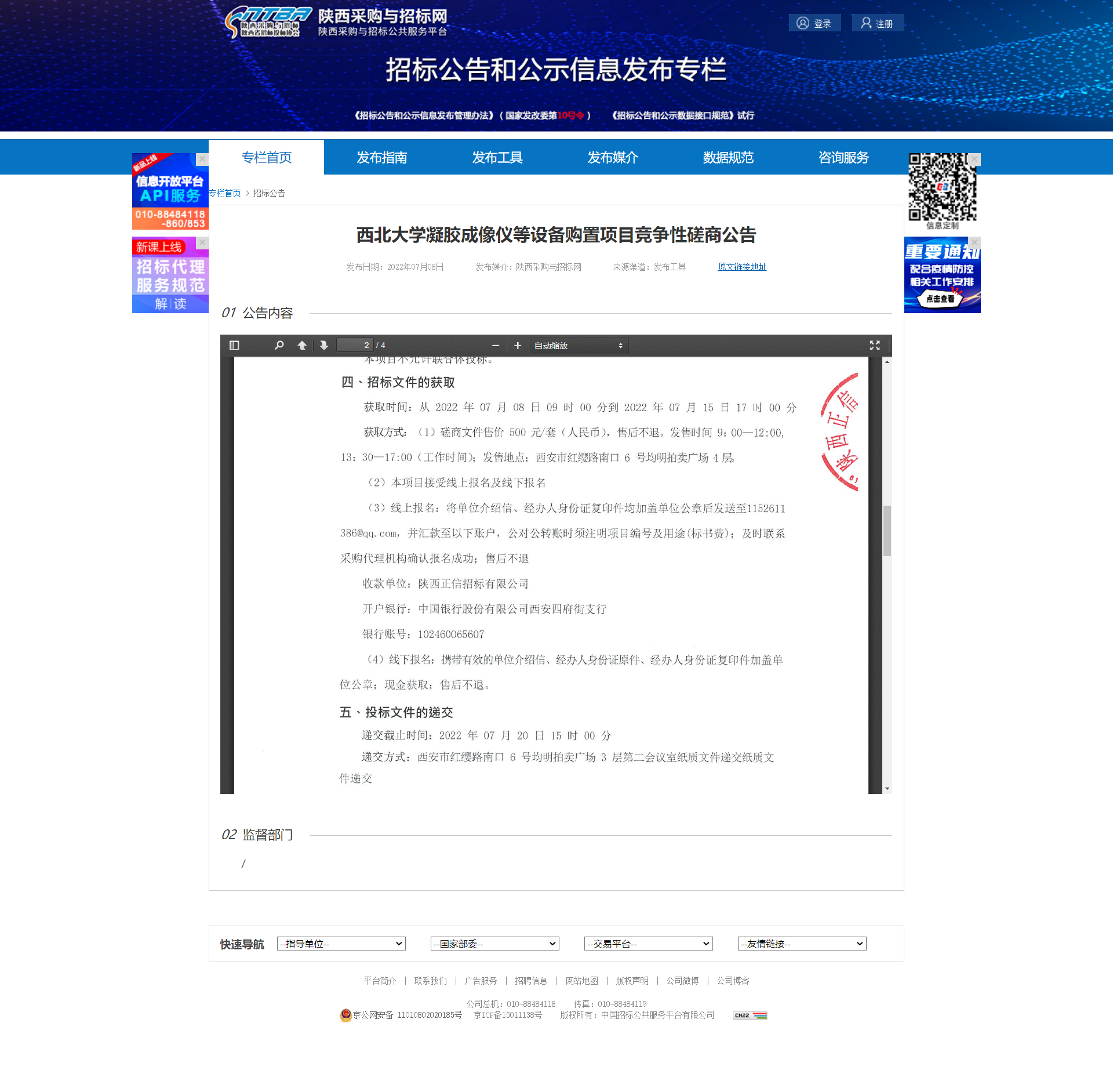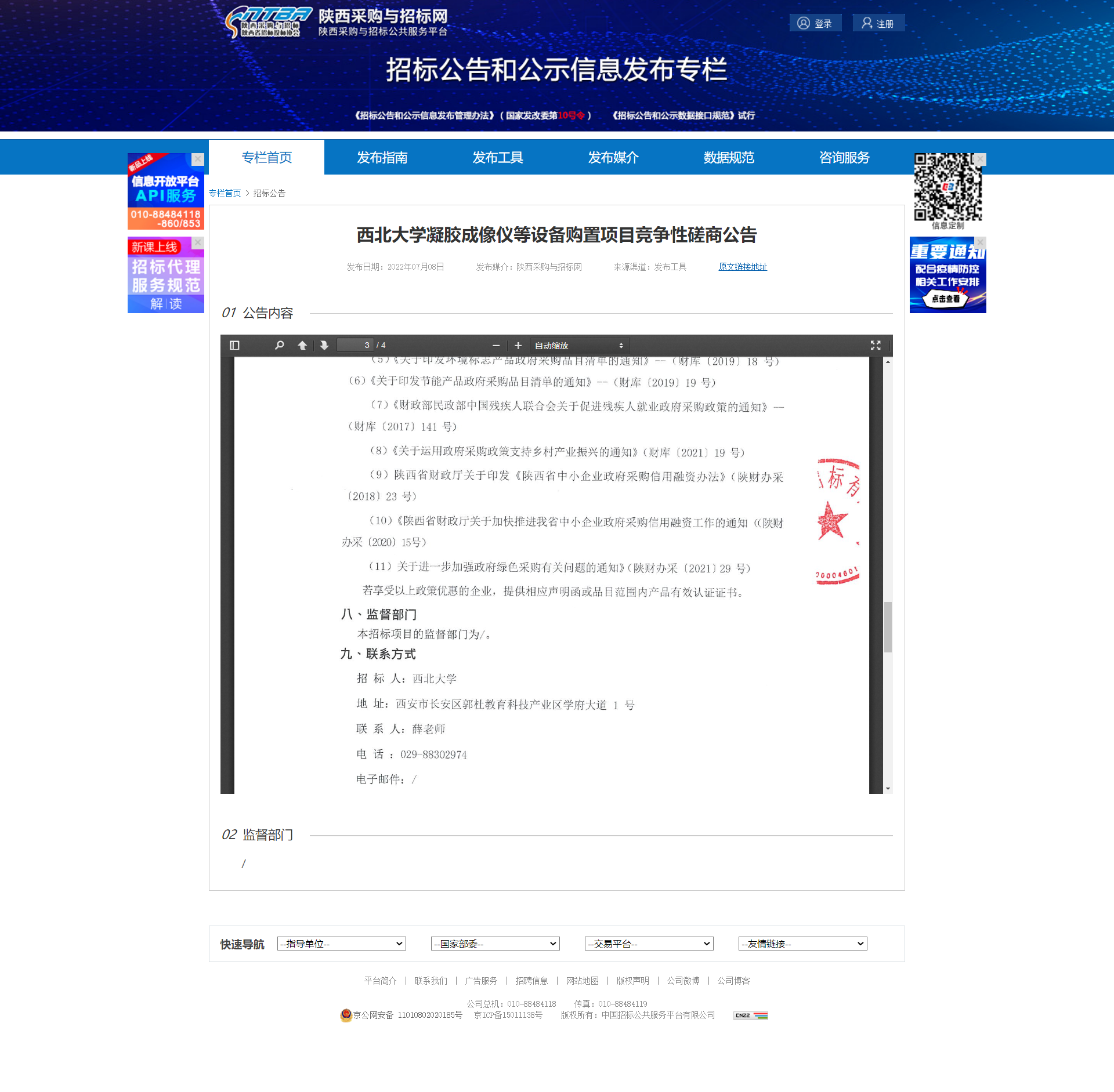 九游会在线登录官网凝胶成像仪等设备购置项目竞争性磋商公告 作者: 编辑:薛利娟 时间:2022-07-08 原公告链接:http://bulletin.sntba.com/biddingBulletin/2022-07-08/445120.html