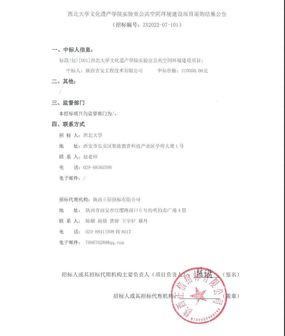 九游会在线登录官网文化遗产学院实验室公共空间环境建设项目采购结果公告