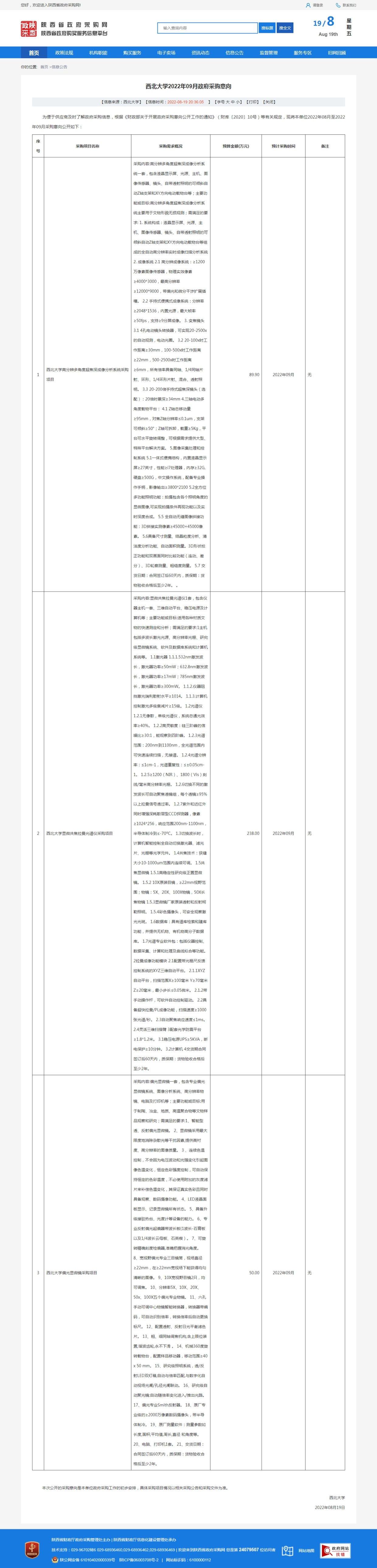 九游会在线登录官网2022年09月政府采购意向 作者: 编辑:采购与招标办公室 时间:2022-08-19 原公告链接:http://www.ccgp-shaanxi.gov.cn/freecms/site/shaanxi/ggxx/info/2022/8a69c26982b043e70182b0bd43770f31.html?noticeType=59¬iceId=eff4c947-1fbb-11ed-9a8e-08c0eb20c666