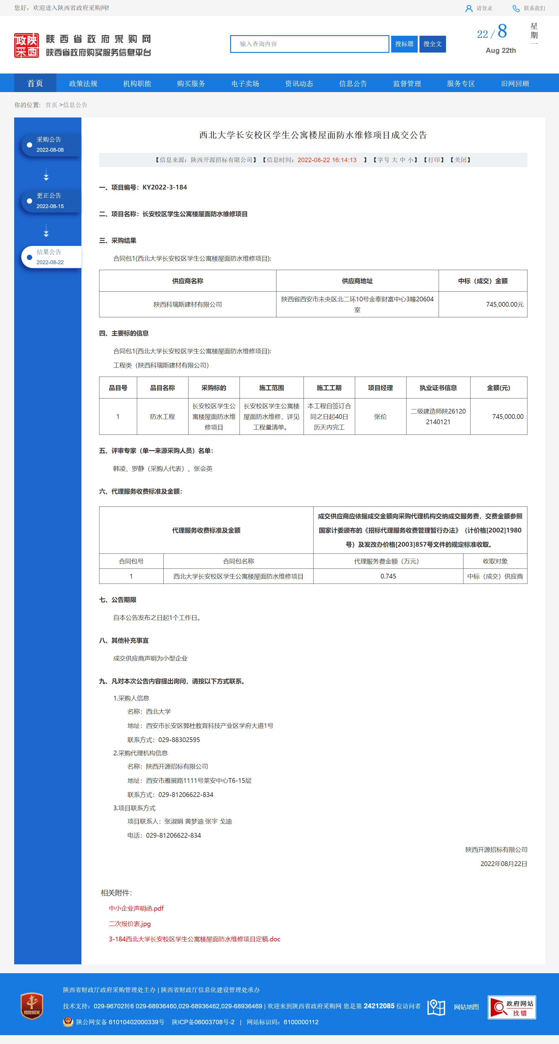 九游会在线登录官网长安校区学生公寓楼屋面防水维修项目成交公告