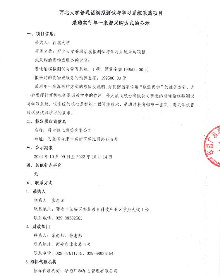 九游会在线登录官网普通话模拟测试与学习系统采购项目采购实行单一来源采购方式的公示