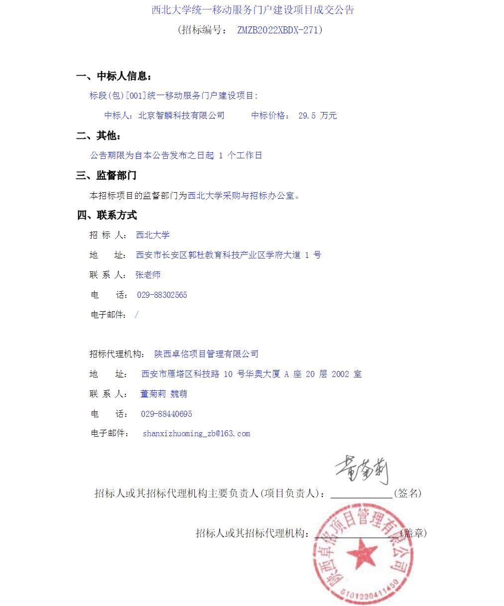 九游会在线登录官网统一移动服务门户建设项目成交公告