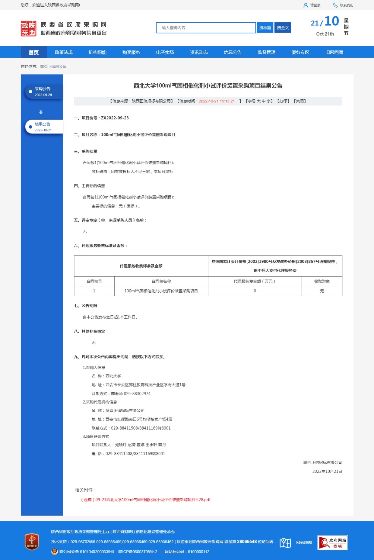 九游会在线登录官网100ml气固相催化剂小试评价装置采购项目结果公告 作者: 编辑:采购与招标办公室 时间:2022-10-21 原公告链接:http://www.ccgp-shaanxi.gov.cn/freecms/site/shaanxi/ggxx/info/2022/8a69c29183b278190183f9504bd56da6.html?noticeType=001006¬iceId=6e4daf58-5110-11ed-9a8e-08c0eb20c666