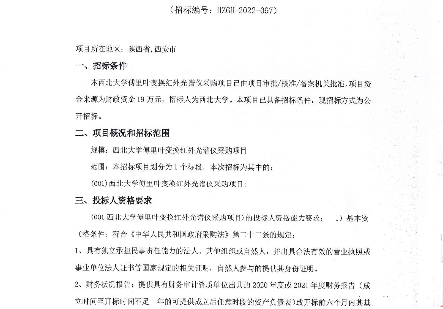 九游会在线登录官网傅里叶变换红外光谱仪采购项目招标公告 作者: 编辑:采购与招标办公室 时间:2022-10-31 原公告链接:http://bulletin.sntba.com/biddingBulletin/2022-10-31/492472.html