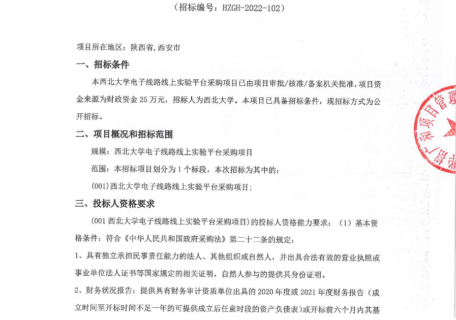 九游会在线登录官网电子线路线上实验平台采购项目公开招标公告 作者: 编辑:采购与招标办公室 时间:2022-11-04 原公告链接:http://bulletin.sntba.com/biddingBulletin/2022-11-04/494688.html