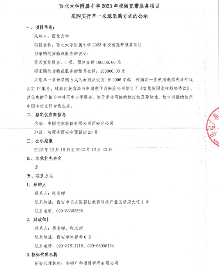 九游会在线登录官网附属中学2023年校园宽带服务项目采购实行单一来源采购方式的公示