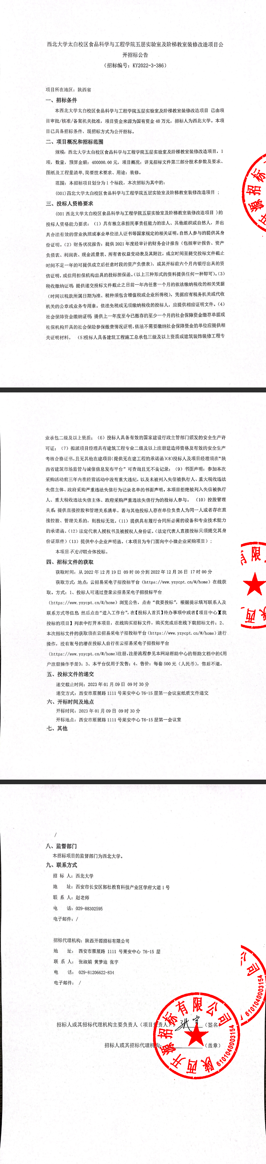 九游会在线登录官网太白校区食品科学与工程学院五层实验室及阶梯教室装修改造项目公开招标公告