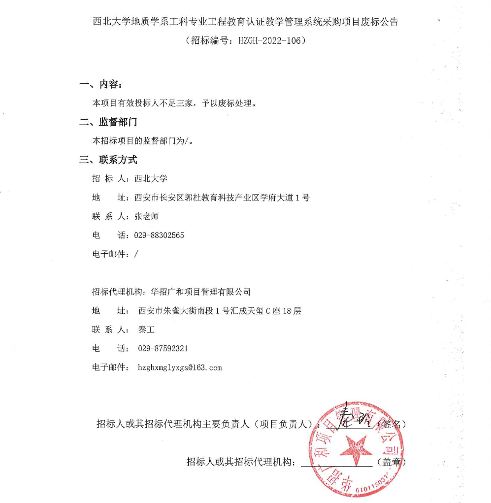九游会在线登录官网地质学系工科专业工程教育认证教学管理系统采购项目废标公告