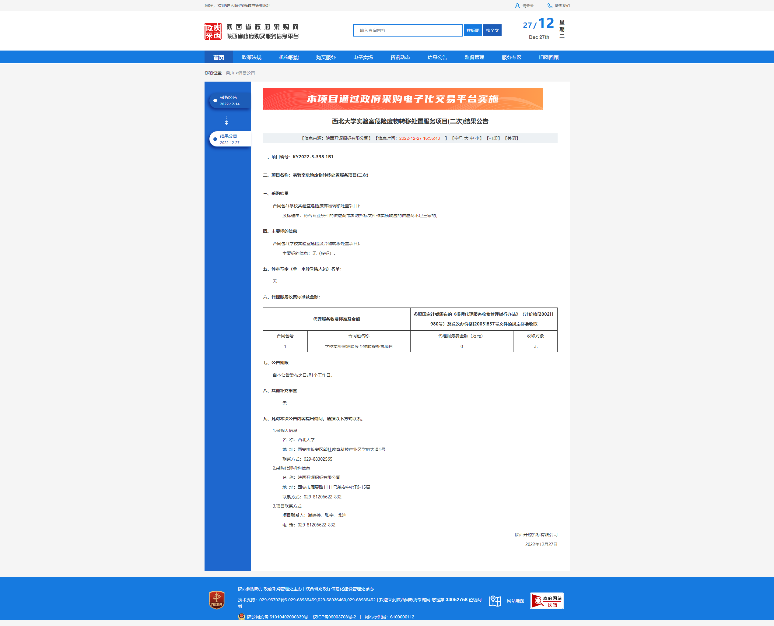 九游会在线登录官网实验室危险废物转移处置服务项目(二次)结果公告
