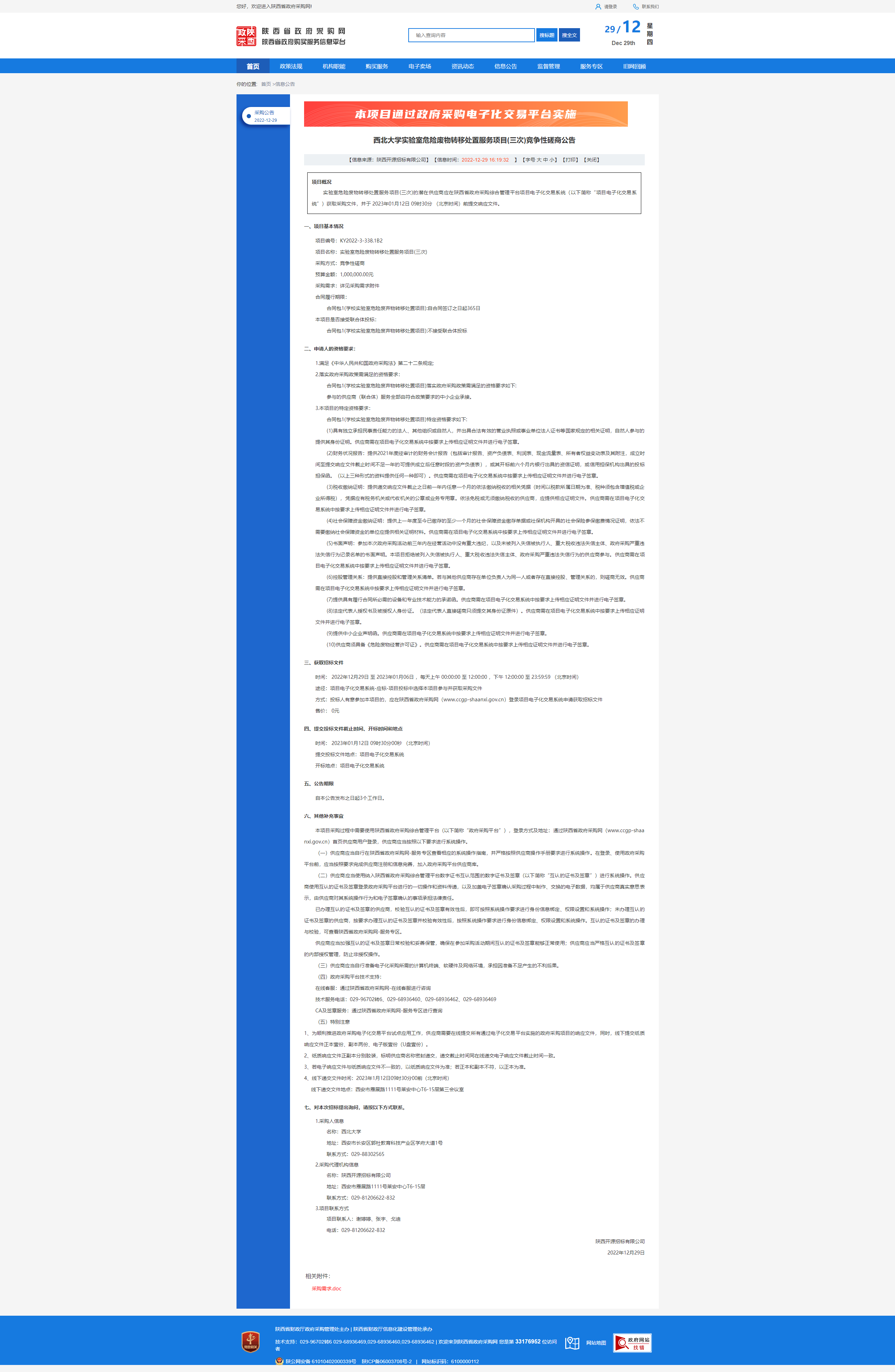 九游会在线登录官网实验室危险废物转移处置服务项目(三次)竞争性磋商公告