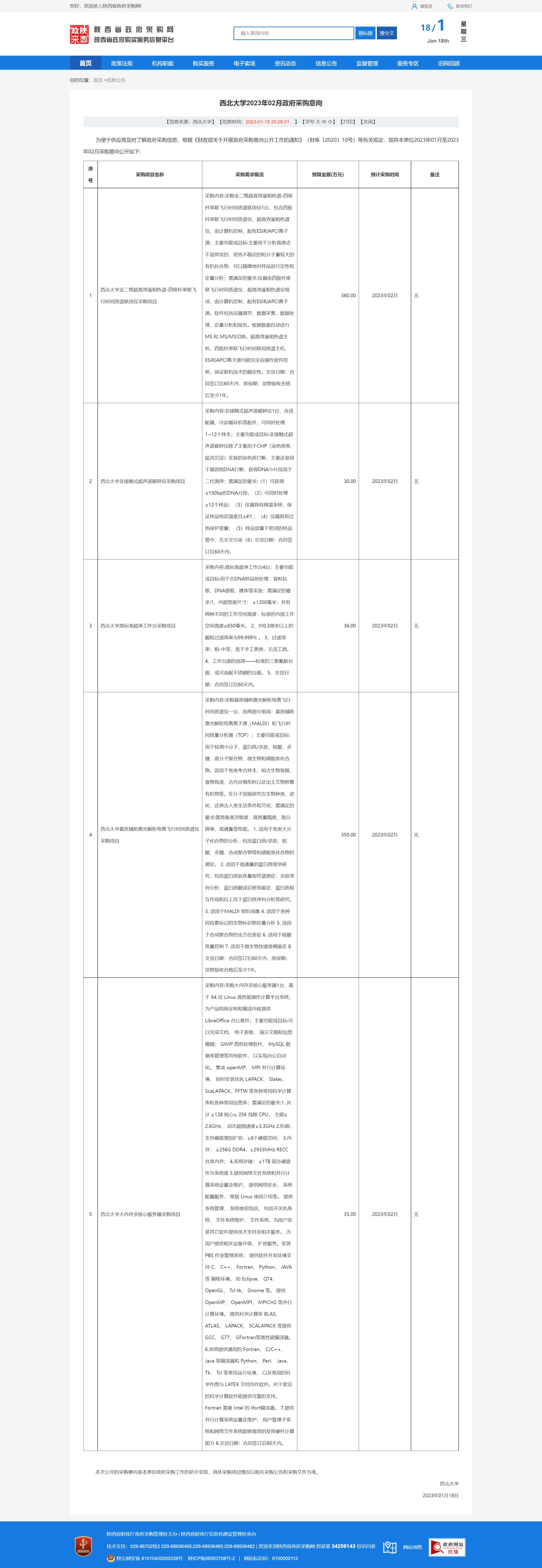 九游会在线登录官网2023年02月政府采购意向 作者: 编辑:采购与招标办公室 时间:2023-01-18 原公告链接:http://www.ccgp-shaanxi.gov.cn/freecms/site/shaanxi/ggxx/info/2023/8a69c1bf85b8b6df0185c4d61e1504ec.html?noticeType=59¬iceId=52c09306-972c-11ed-9a8e-08c0eb20c666