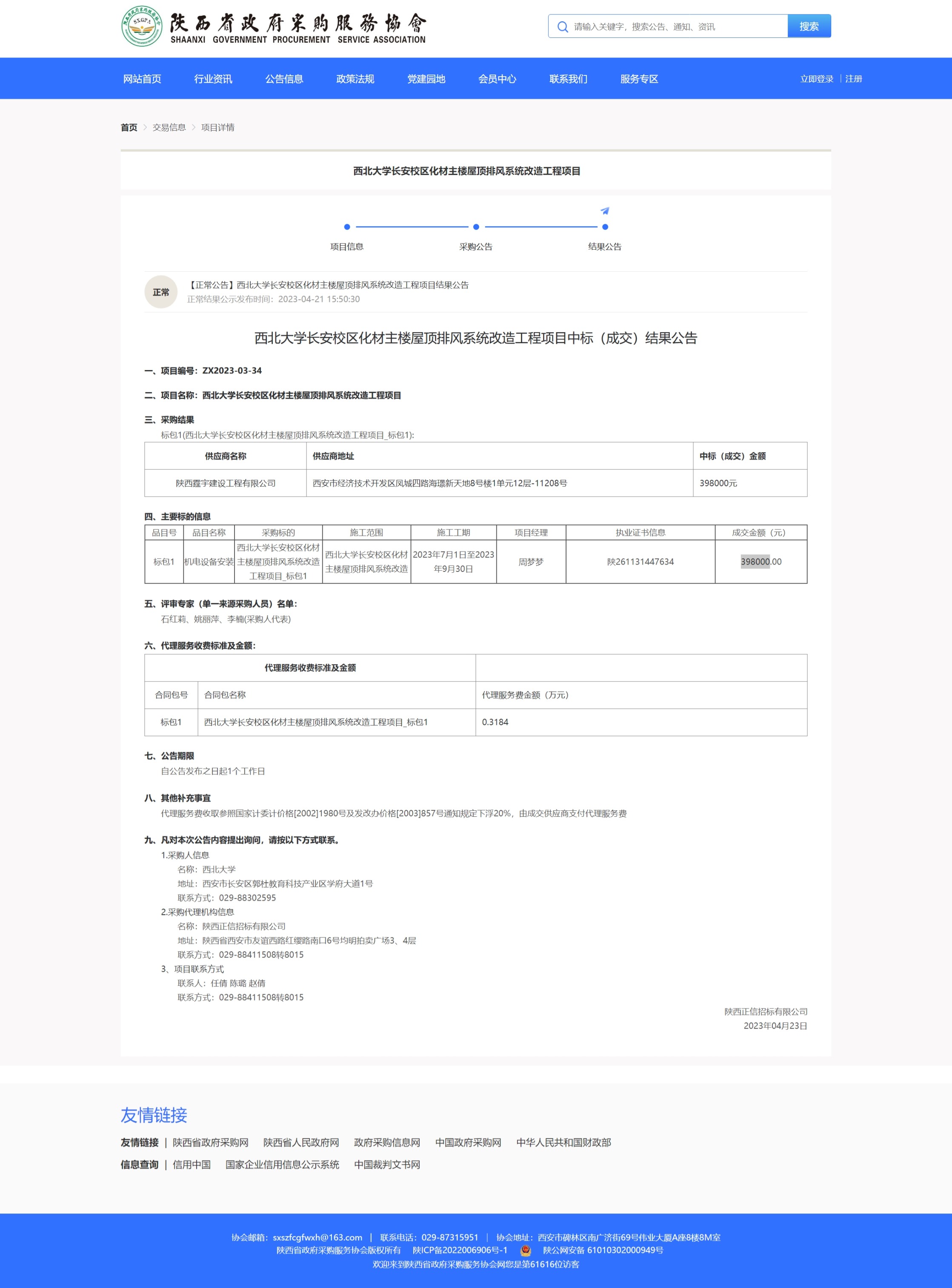 九游会在线登录官网长安校区化材主楼屋顶排风系统改造工程项目中标(成交)结果公告