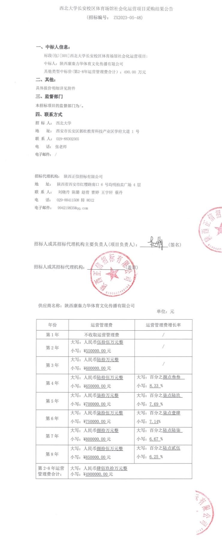 九游会在线登录官网长安校区体育场馆社会化运营项目采购结果公告