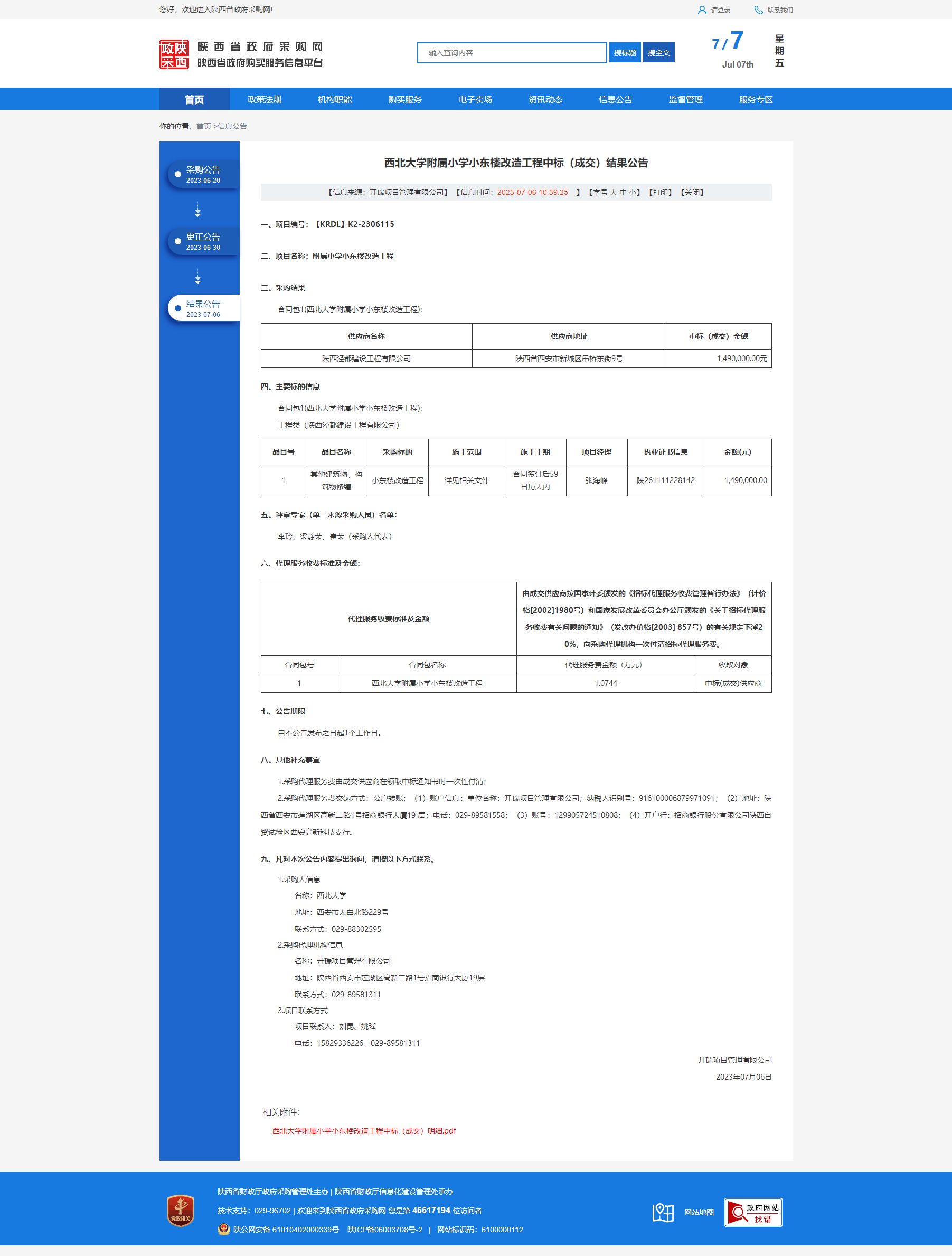 九游会在线登录官网附属小学小东楼改造工程中标(成交)结果公告