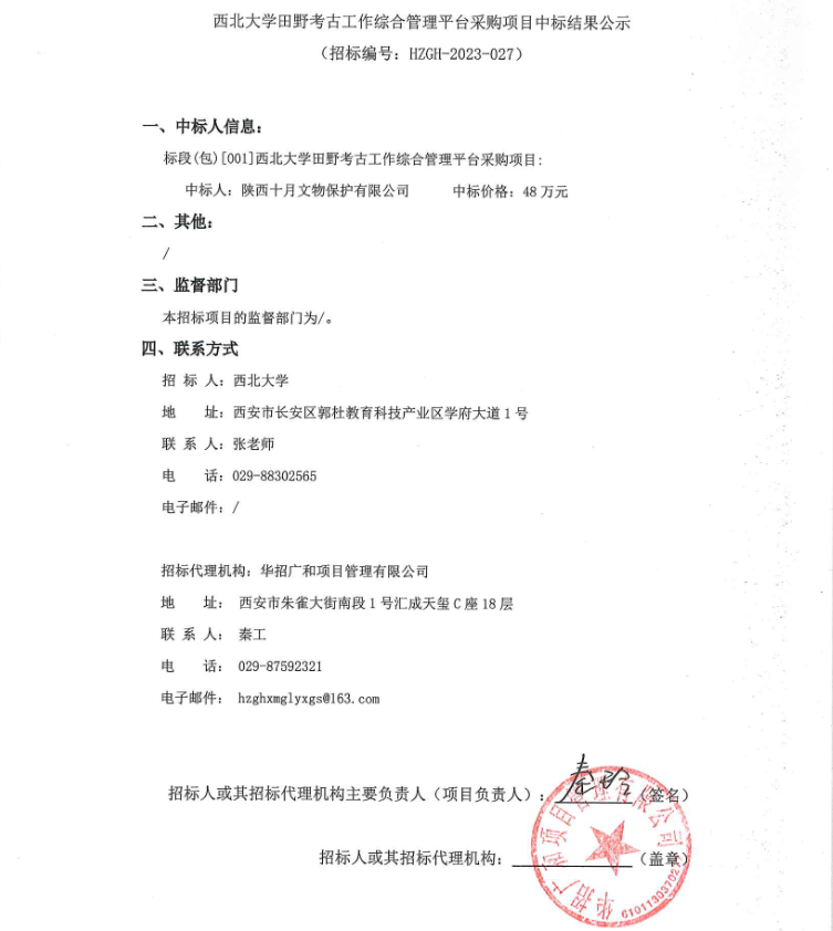 九游会在线登录官网田野考古工作综合管理平台采购项目中标结果公示