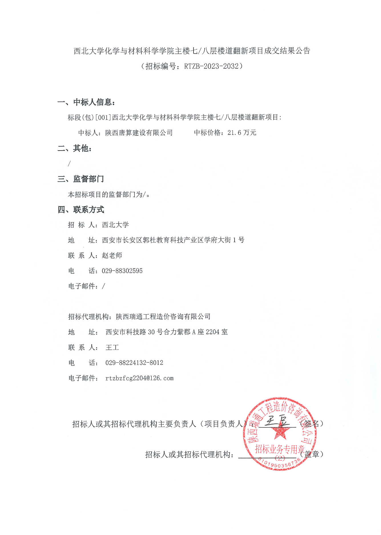 九游会在线登录官网化学与材料科学学院主楼七/八层楼道翻新项目成交结果公告