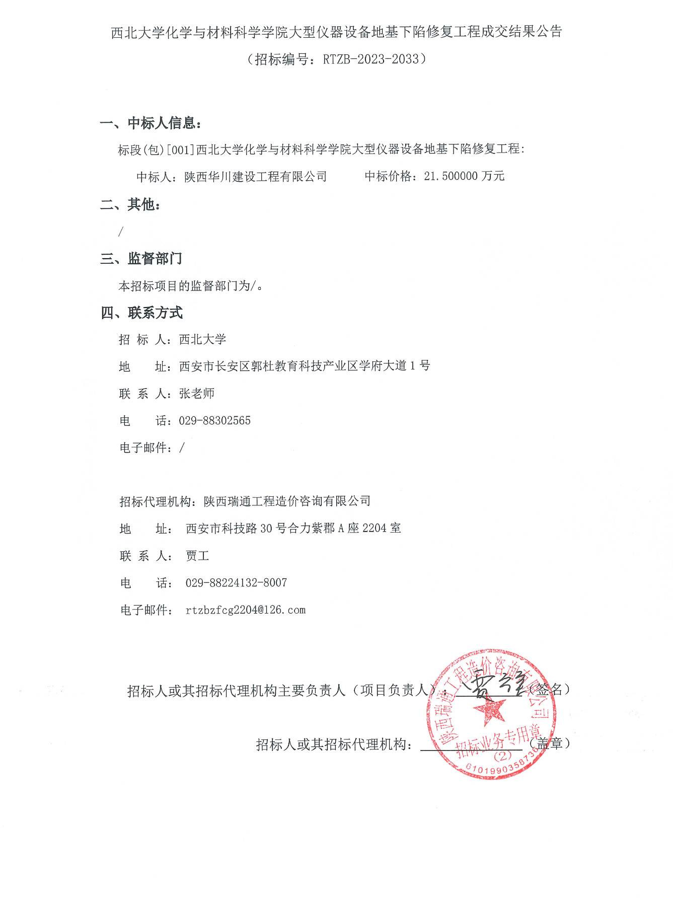 九游会在线登录官网化学与材料科学学院大型仪器设备地基下陷修复工程成交结果公告