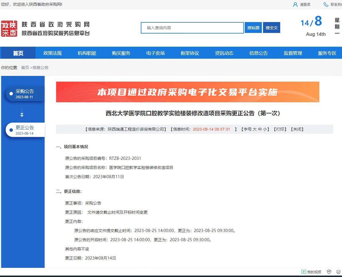 九游会在线登录官网医学院口腔教学实验楼装修改造项目采购更正公告(第一次)