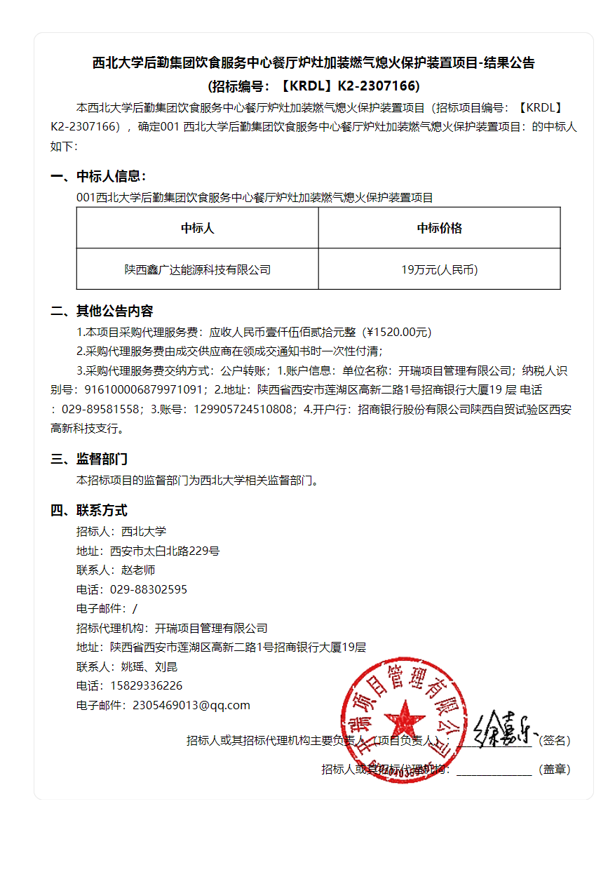 九游会在线登录官网后勤集团饮食服务中心餐厅炉灶加装燃气熄火保护装置项目-结果公告