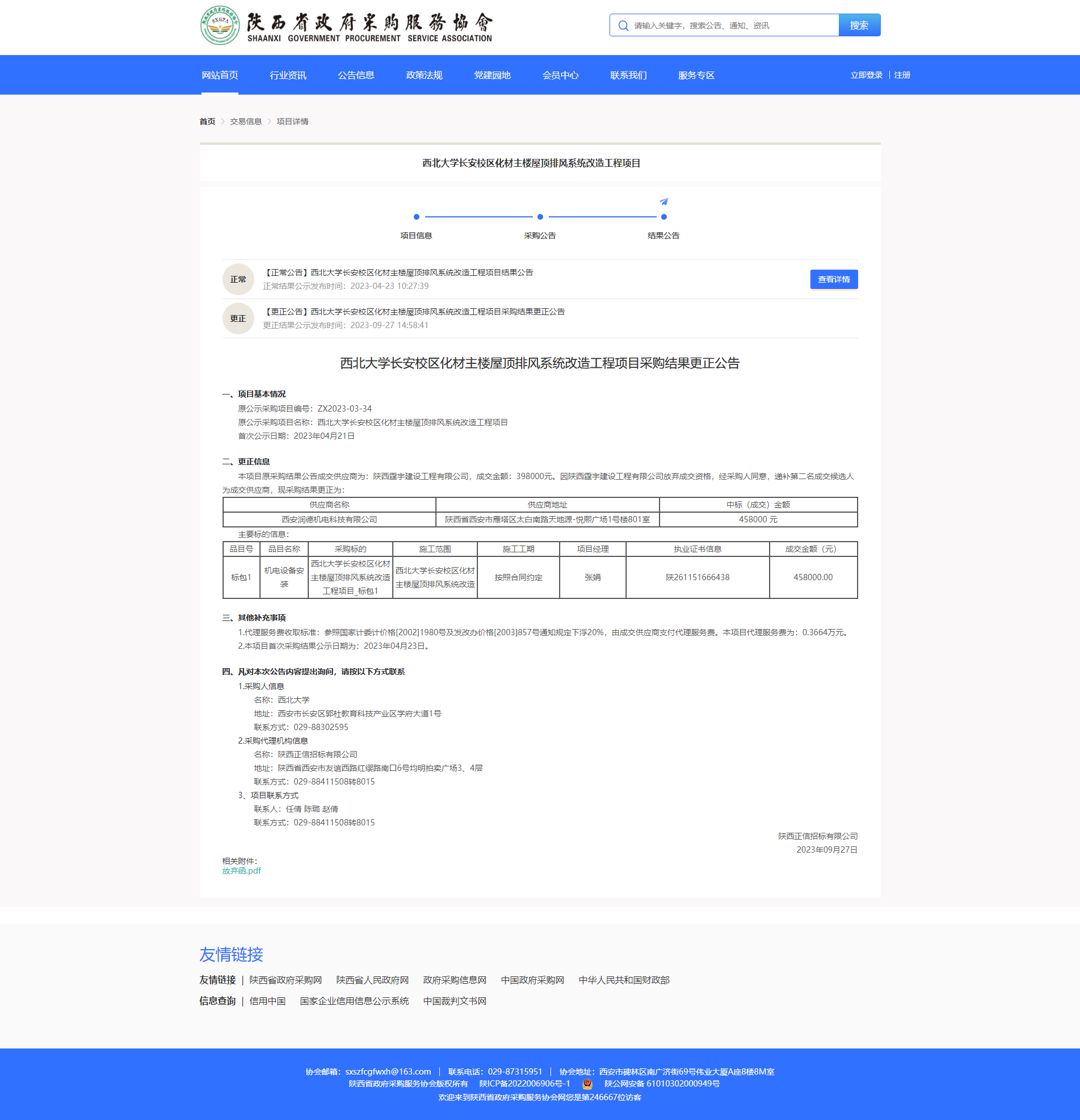 九游会在线登录官网长安校区化材主楼屋顶排风系统改造工程项目采购结果更正公告