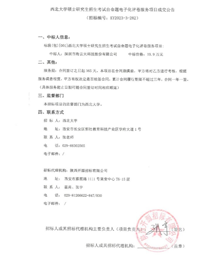 九游会在线登录官网硕士研究生招生考试自命题电子化评卷服务项目成交公告