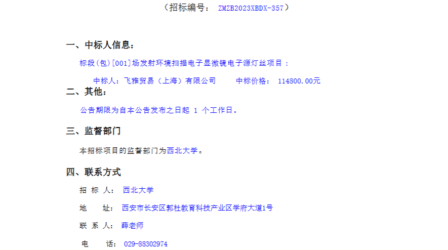 九游会在线登录官网场发射环境扫描电子显微镜电子源灯丝项目采购结果公告 作者: 编辑:采购与招标办公室 时间:2023-12-14 原公告链接:http://www.sntba.com/website/gg_show.aspx?id=263188