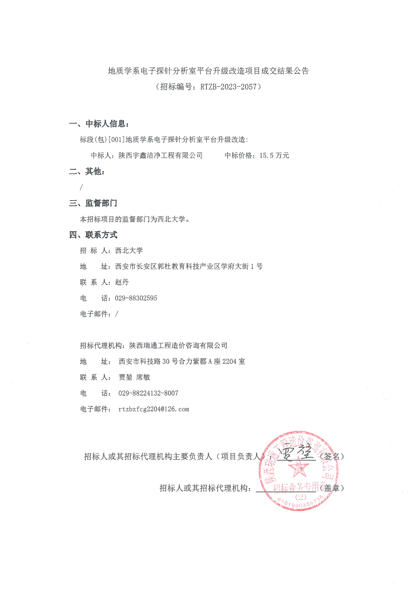 九游会在线登录官网地质学系电子探针分析室平台升级改造项目成交结果公告