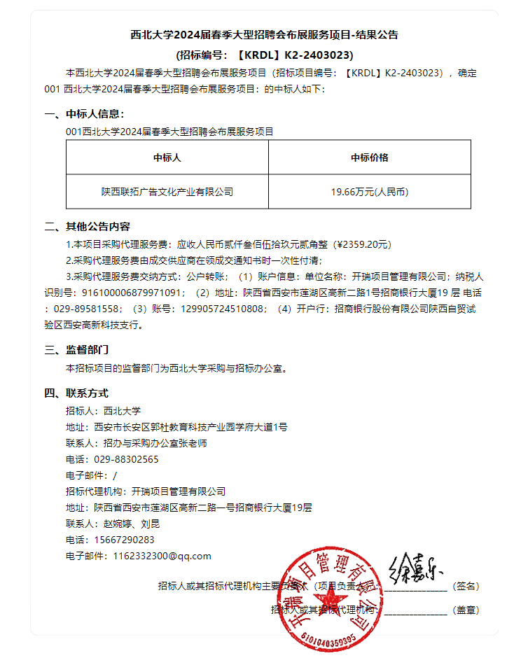 九游会在线登录官网2024届春季大型招聘会布展服务项目结果公告