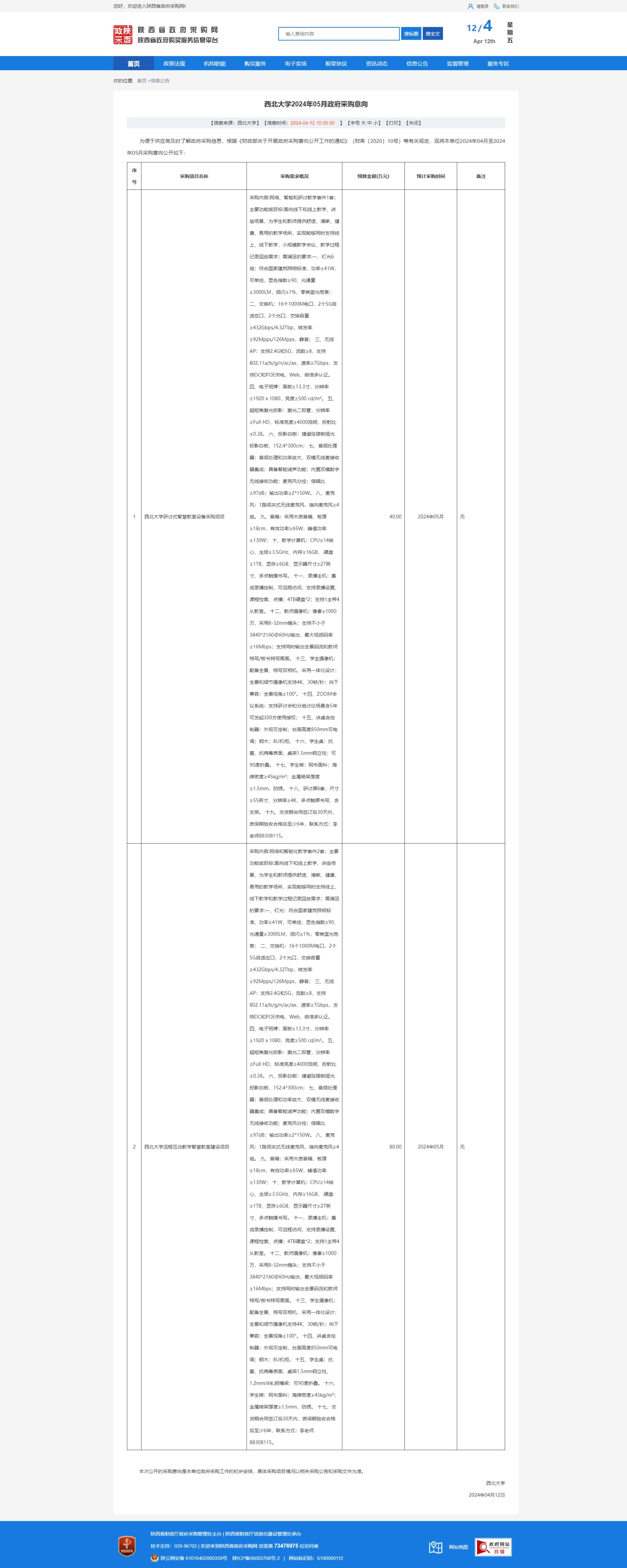 九游会在线登录官网2024年05月政府采购意向 作者: 编辑:采购与招标办公室 时间:2024-04-12 原公告链接:https://www.ccgp-shaanxi.gov.cn/freecms/site/shaanxi/ggxx/info/2024/8a69c67a8ebac77d018ed0101b371004.html?noticeType=59¬iceId=3ac65597-f879-11ee-b8b6-08c0eb20c666
