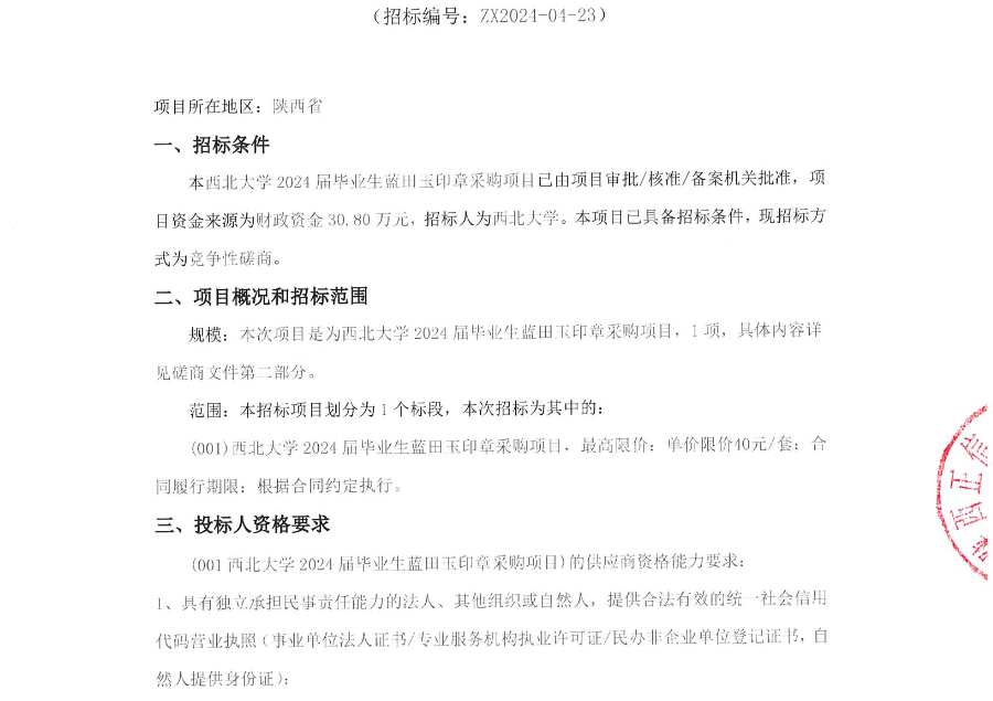 九游会在线登录官网2024届毕业生蓝田玉印章采购项目竞争性磋商公告 作者: 编辑:采购与招标办公室 时间:2024-04-16 原公告链接:http://bulletin.sntba.com/biddingBulletin/2024-04-16/1309683.html