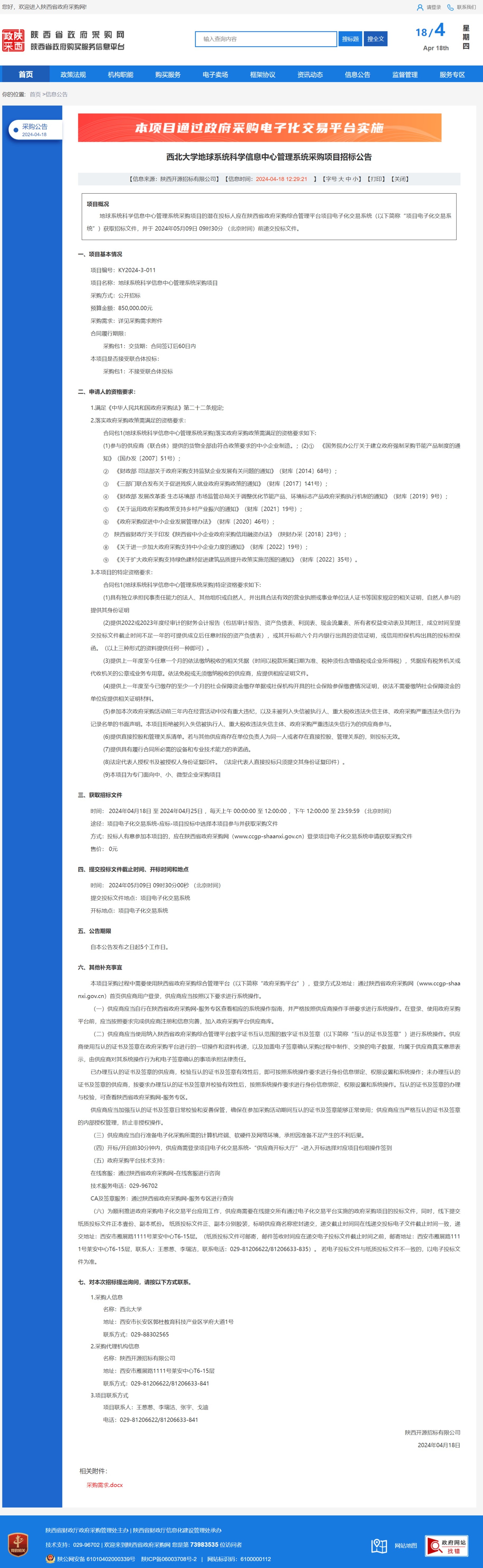 九游会在线登录官网地球系统科学信息中心管理系统采购项目招标公告