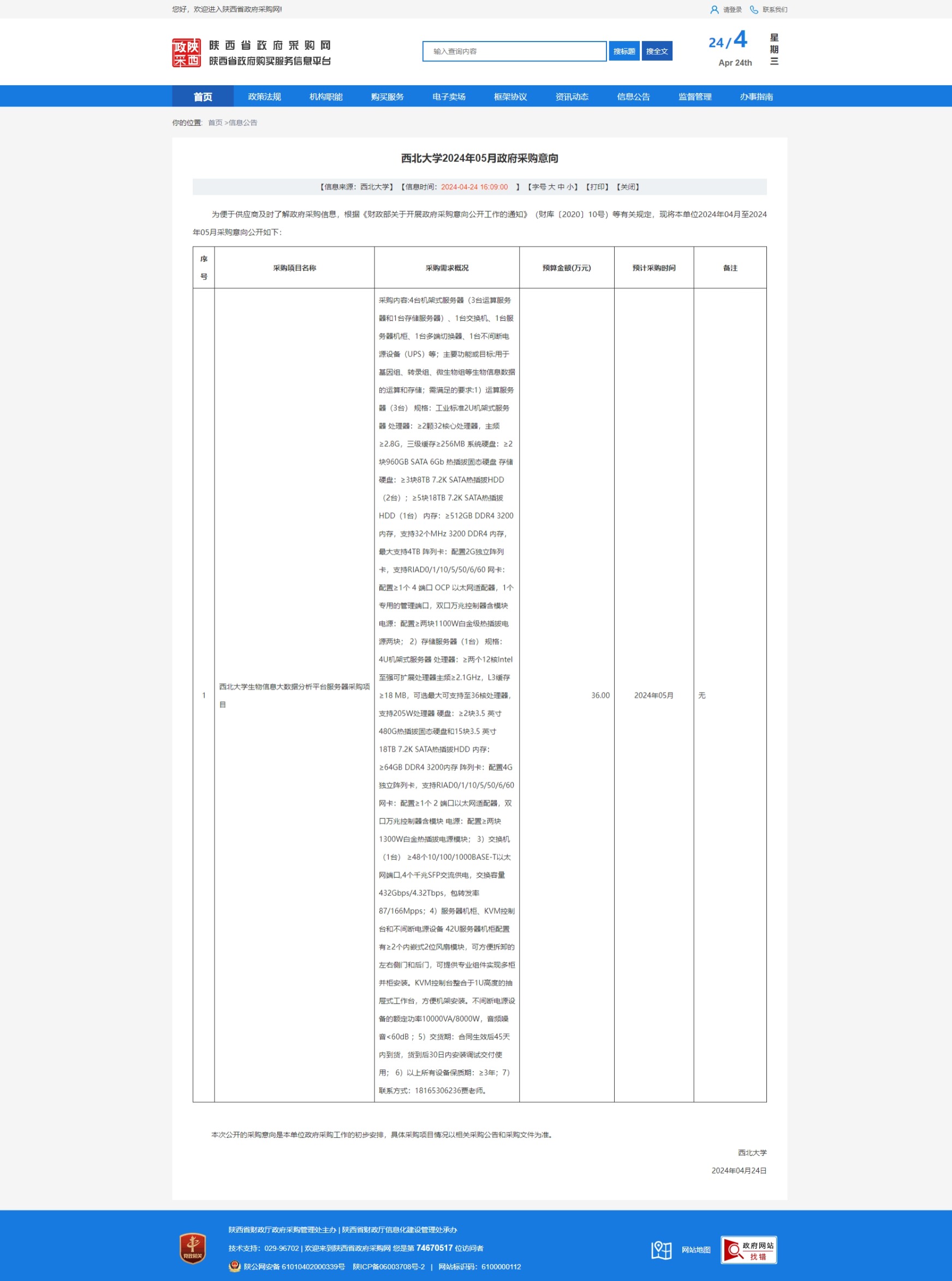 九游会在线登录官网2024年05月政府采购意向 作者: 编辑:采购与招标办公室 时间:2024-04-24 原公告链接:https://www.ccgp-shaanxi.gov.cn/freecms/site/shaanxi/ggxx/info/2024/8a69c67a8f0e0cfb018f0e3fa1d20f61.html?noticeType=59¬iceId=66e64df3-0213-11ef-b8b6-08c0eb20c666