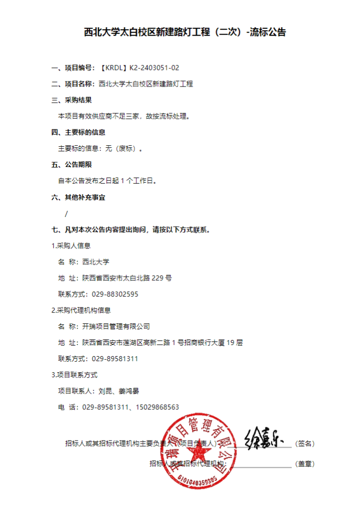 九游会在线登录官网太白校区新建路灯工程(二次)-流标公告