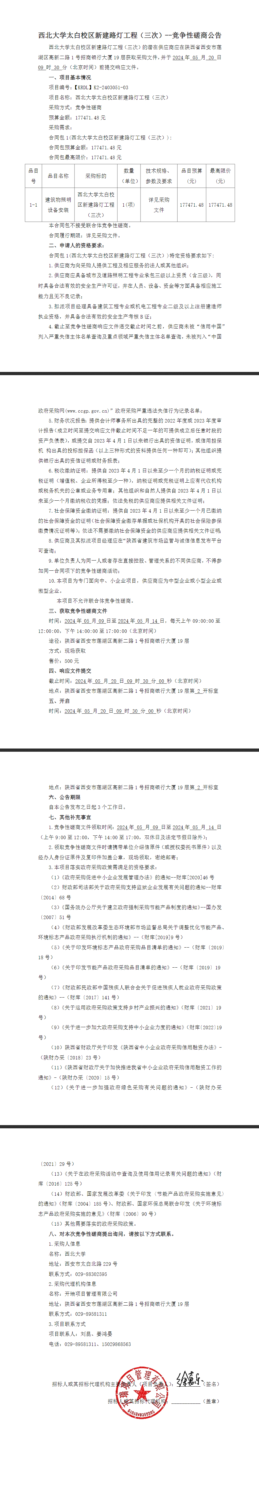 九游会在线登录官网太白校区新建路灯工程(三次)竞争性磋商公告