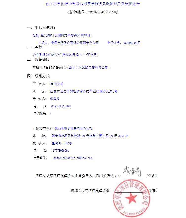 九游会在线登录官网附属中学校园网宽带服务采购项目采购结果公告