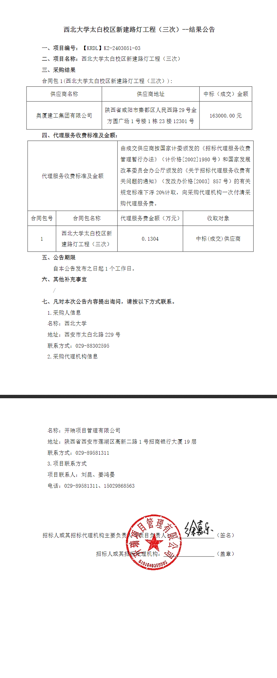 九游会在线登录官网太白校区新建路灯工程(三次)结果公告