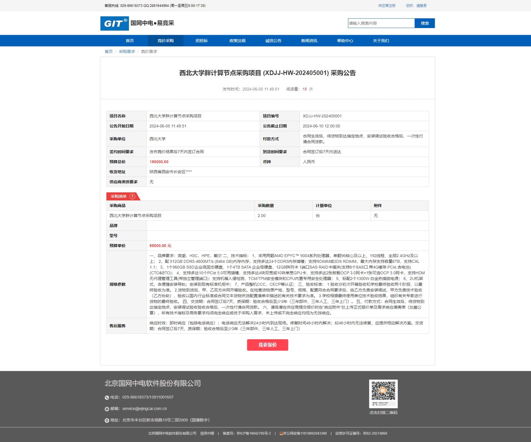 九游会在线登录官网胖计算节点采购项目 (XDJJ-HW-202405001) 采购公告 作者: 编辑:采购与招标办公室 时间:2024-06-05 原公告链接:https://www.ejingcai.com.cn/site/bidding/detail/10763