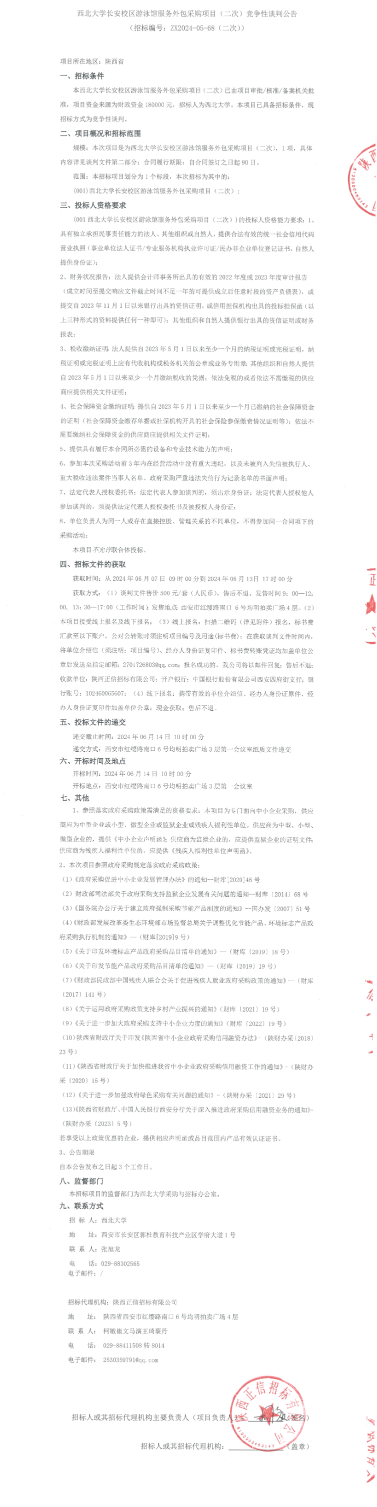 九游会在线登录官网长安校区游泳馆服务外包采购项目(二次)竞争性谈判公告