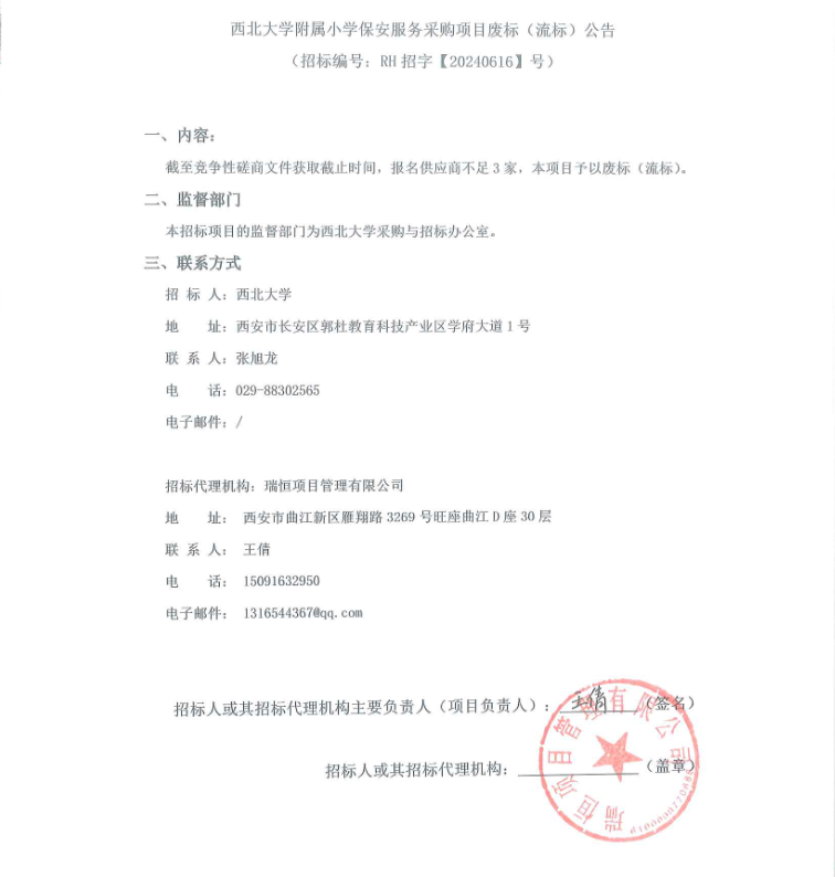 九游会在线登录官网附属小学保安服务采购项目废标(流标)公告