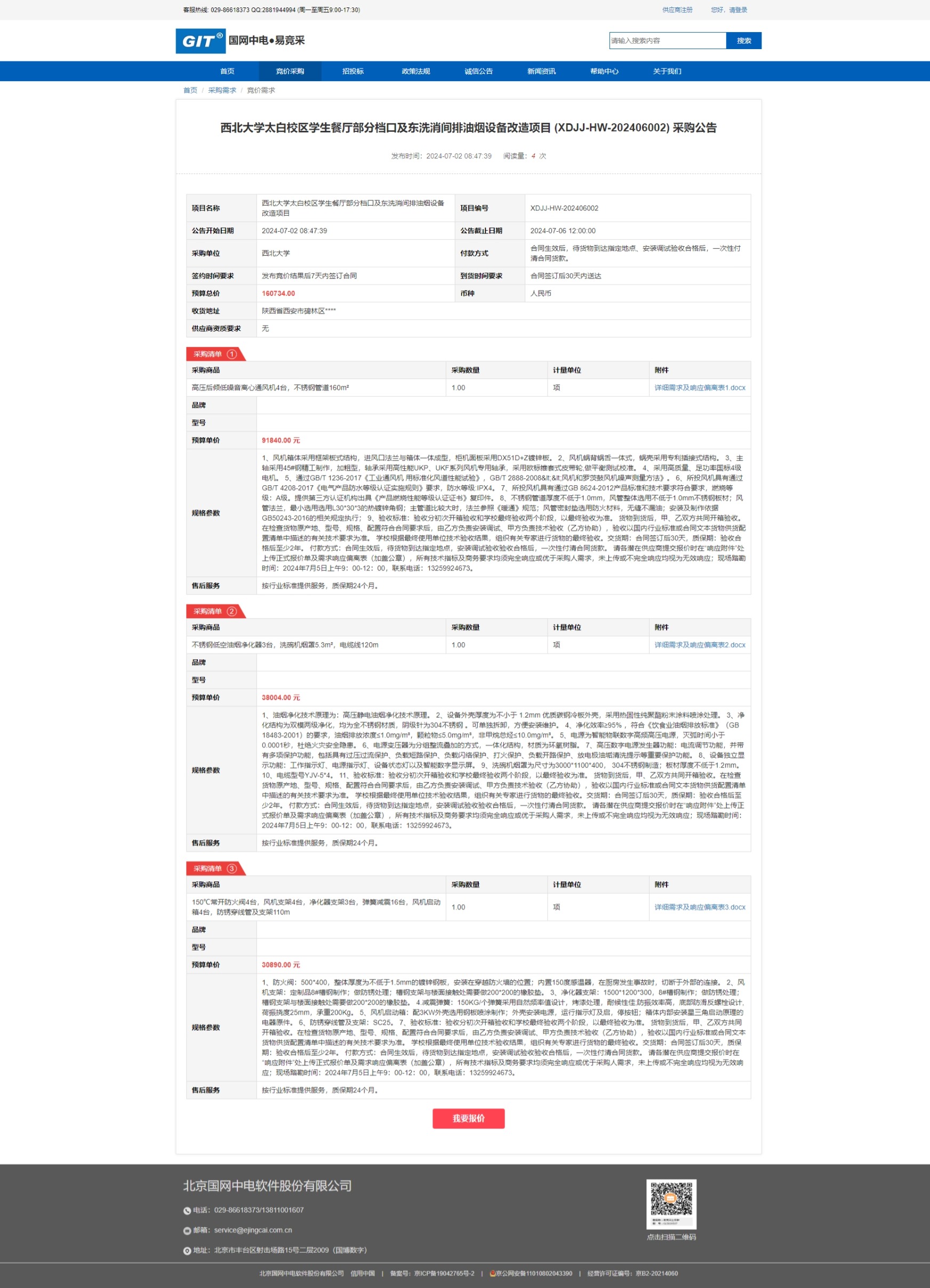 九游会在线登录官网太白校区学生餐厅部分档口及东洗消间排油烟设备改造项目 (XDJJ-HW-202406002) 竞价采购公告 作者: 编辑:采购与招标办公室 时间:2024-07-02 原公告链接:https://www.ejingcai.com.cn/site/bidding/detail/11377