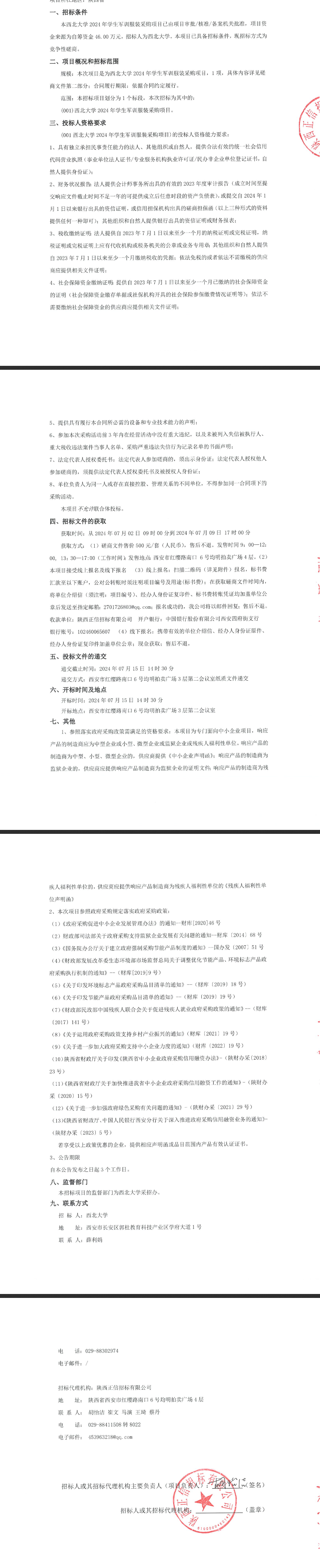 九游会在线登录官网2024年学生军训服装采购项目竞争性磋商公告 作者: 编辑: 时间:2024-07-02 原公告链接:http://bulletin.sntba.com/biddingBulletin/2024-07-02/1563911.html