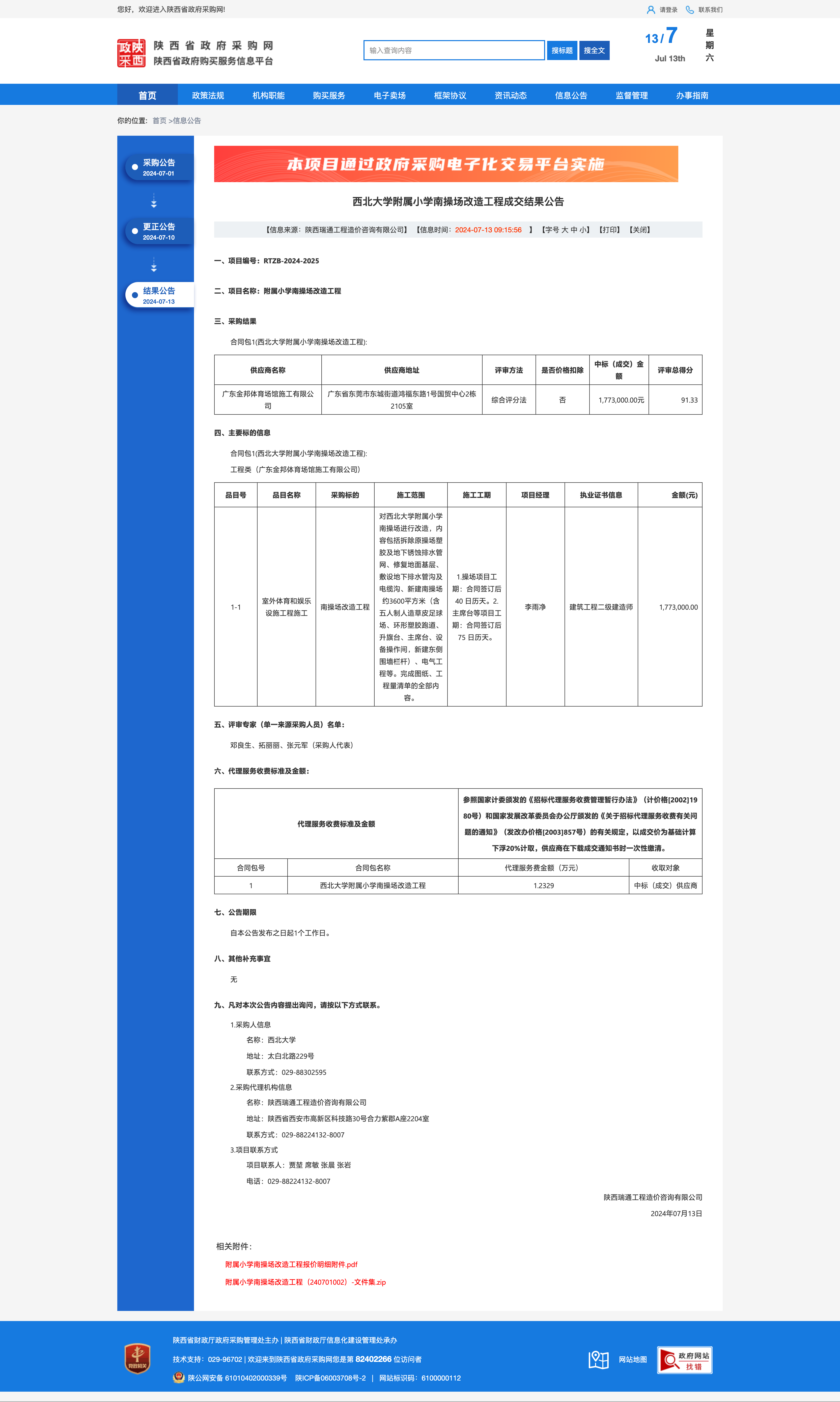 九游会在线登录官网附属小学南操场改造工程成交结果公告