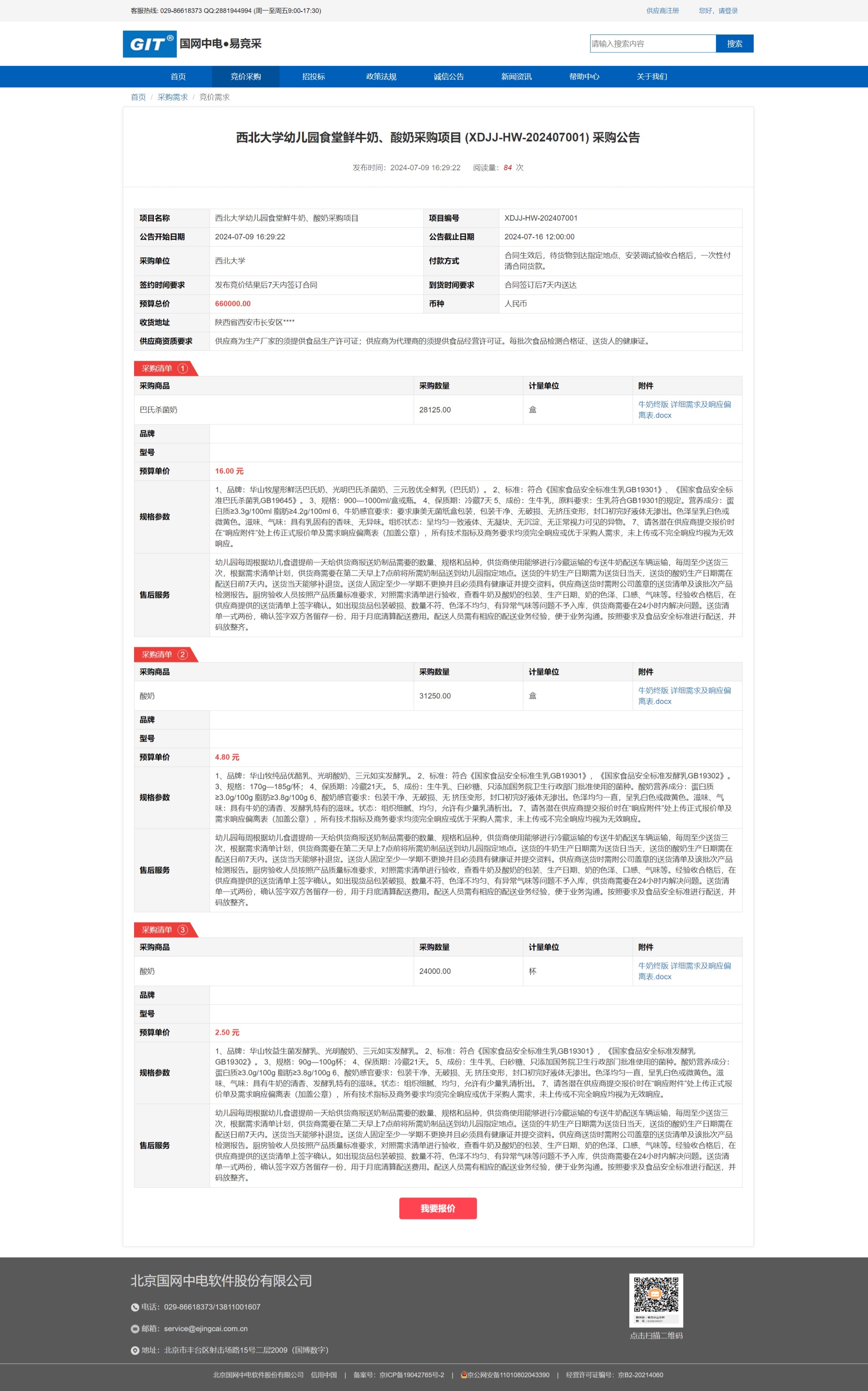 九游会在线登录官网幼儿园食堂鲜牛奶、酸奶采购项目 (XDJJ-HW-202407001) 竞价采购公告 作者: 编辑:采购与招标办公室 时间:2024-07-15 原公告链接:https://www.ejingcai.com.cn/site/bidding/detail/11568