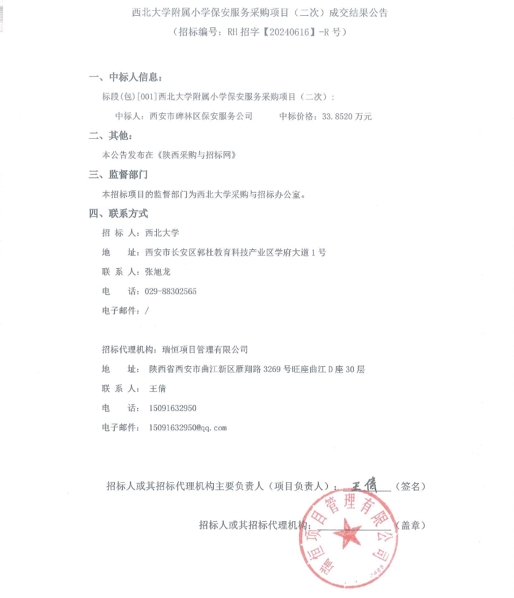 九游会在线登录官网附属小学保安服务采购项目(二次)成交结果公告