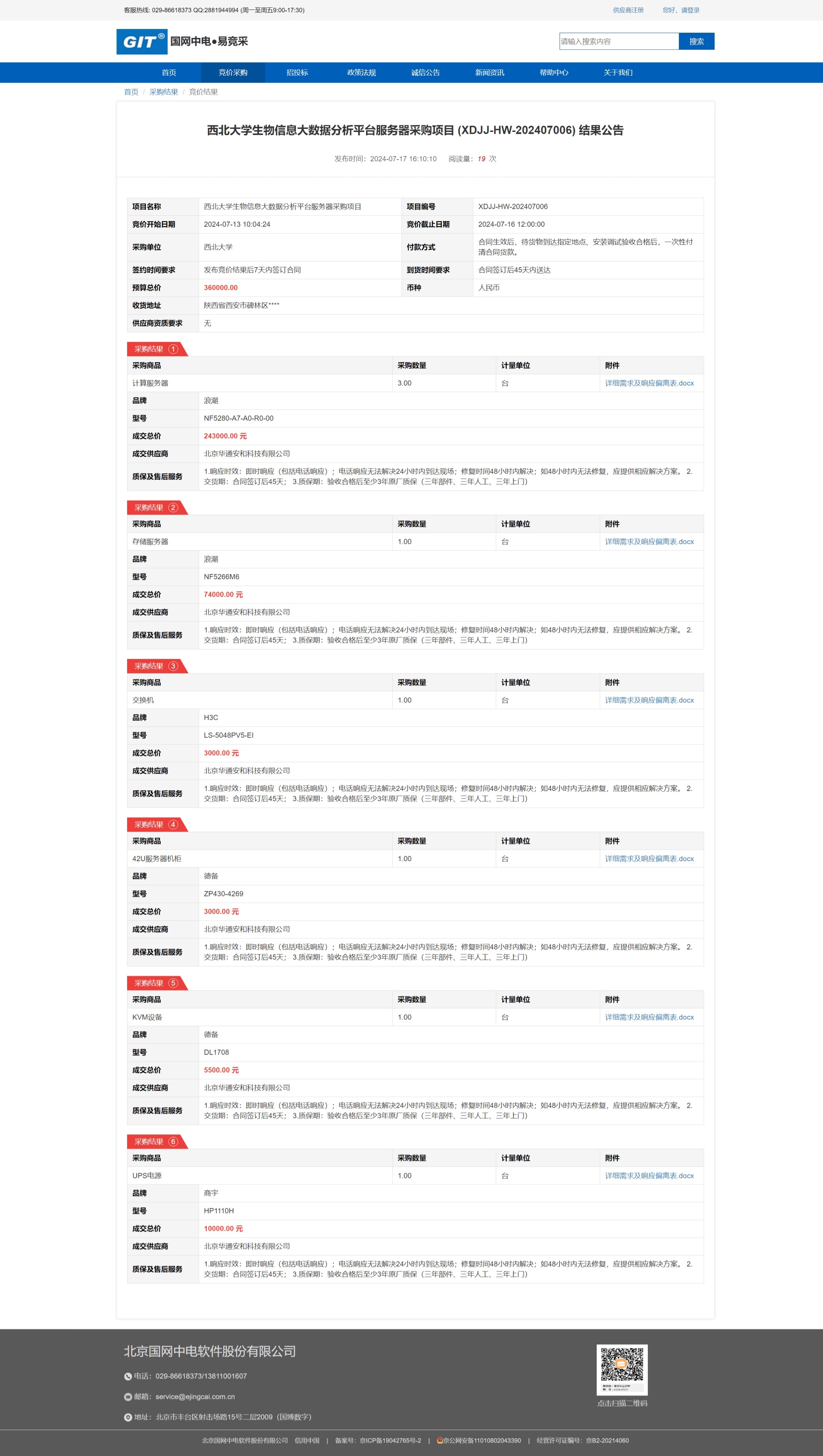 九游会在线登录官网生物信息大数据分析平台服务器采购项目 (XDJJ-HW-202407006) 竞价结果公告 作者: 编辑:采购与招标办公室 时间:2024-07-17 原公告链接:https://www.ejingcai.com.cn/site/bidding/detail/11726