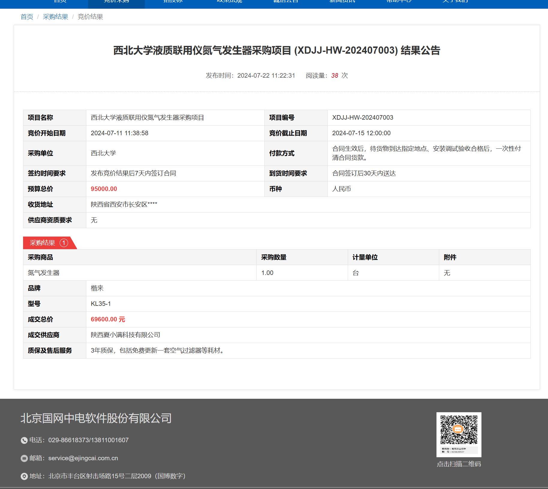九游会在线登录官网液质联用仪氮气发生器采购项目 (XDJJ-HW-202407003) 竞价结果公告 作者: 编辑: 时间:2024-07-23 原公告链接:https://www.ejingcai.com.cn/site/bidding/detail/11793