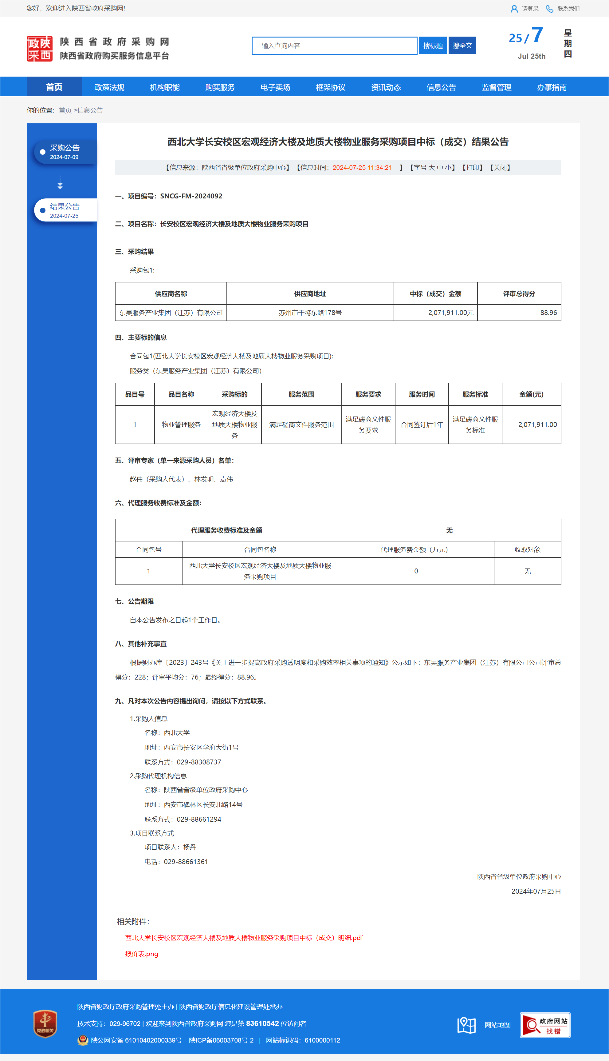 九游会在线登录官网长安校区宏观经济大楼及地质大楼物业服务采购项目中标(成交)结果公告