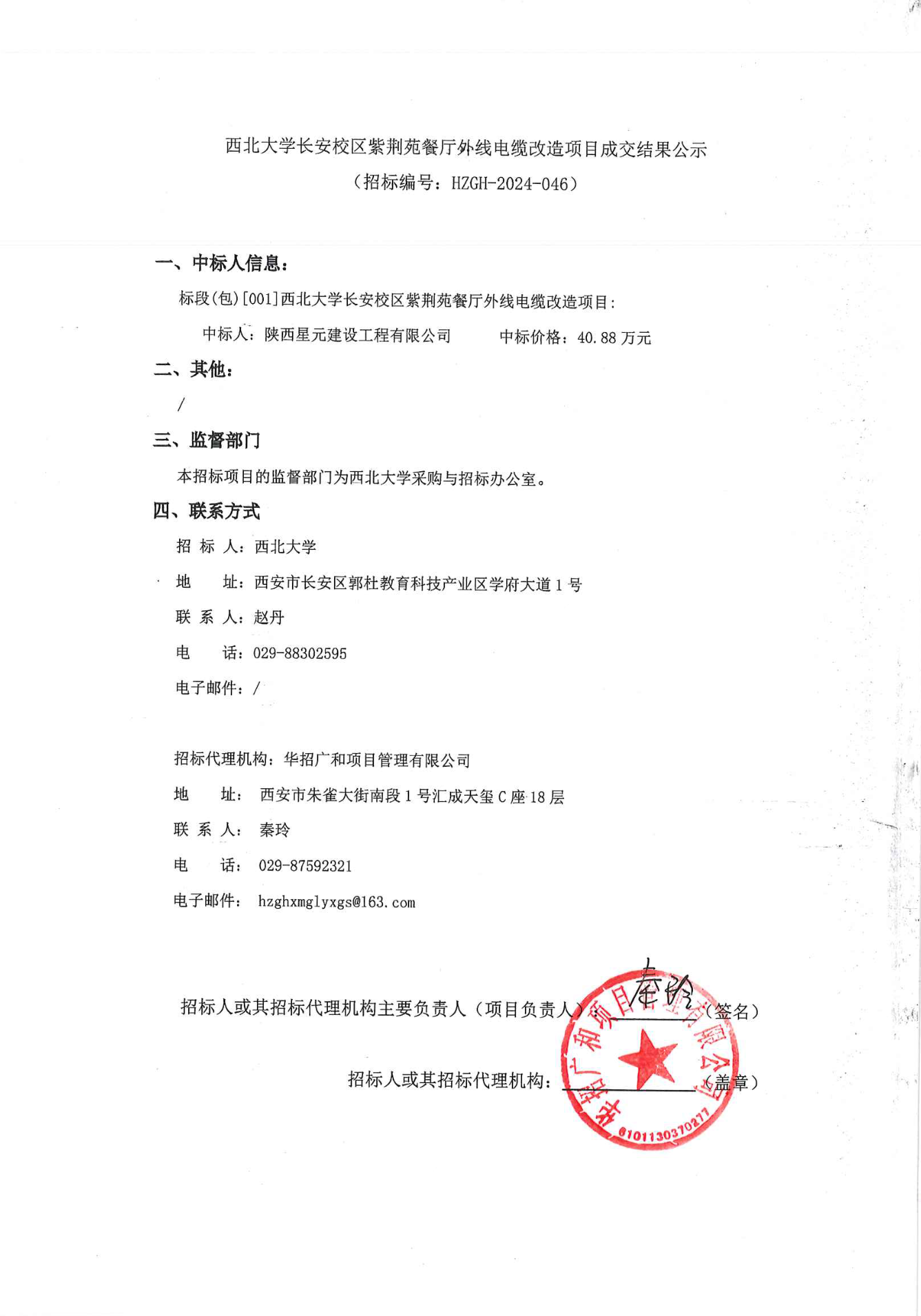 九游会在线登录官网长安校区紫荆苑餐厅外线电缆改造项目成交结果公示