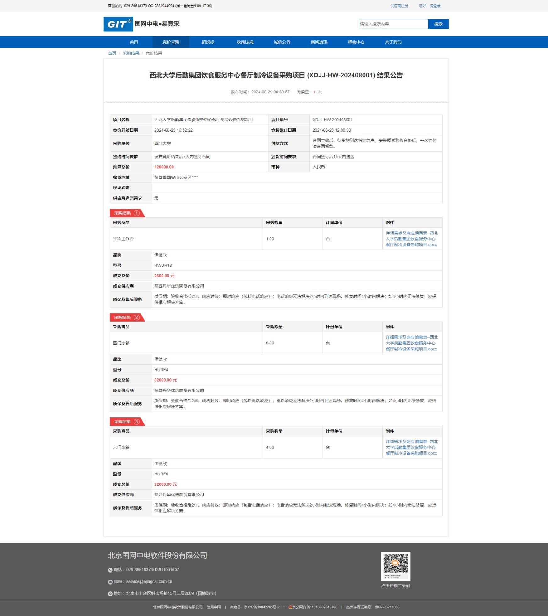九游会在线登录官网后勤集团饮食服务中心餐厅制冷设备采购项目 (XDJJ-HW-202408001) 竞价结果公告 作者: 编辑:采购与招标办公室 时间:2024-08-29 原公告链接:https://www.ejingcai.com.cn/site/bidding/detail/12245