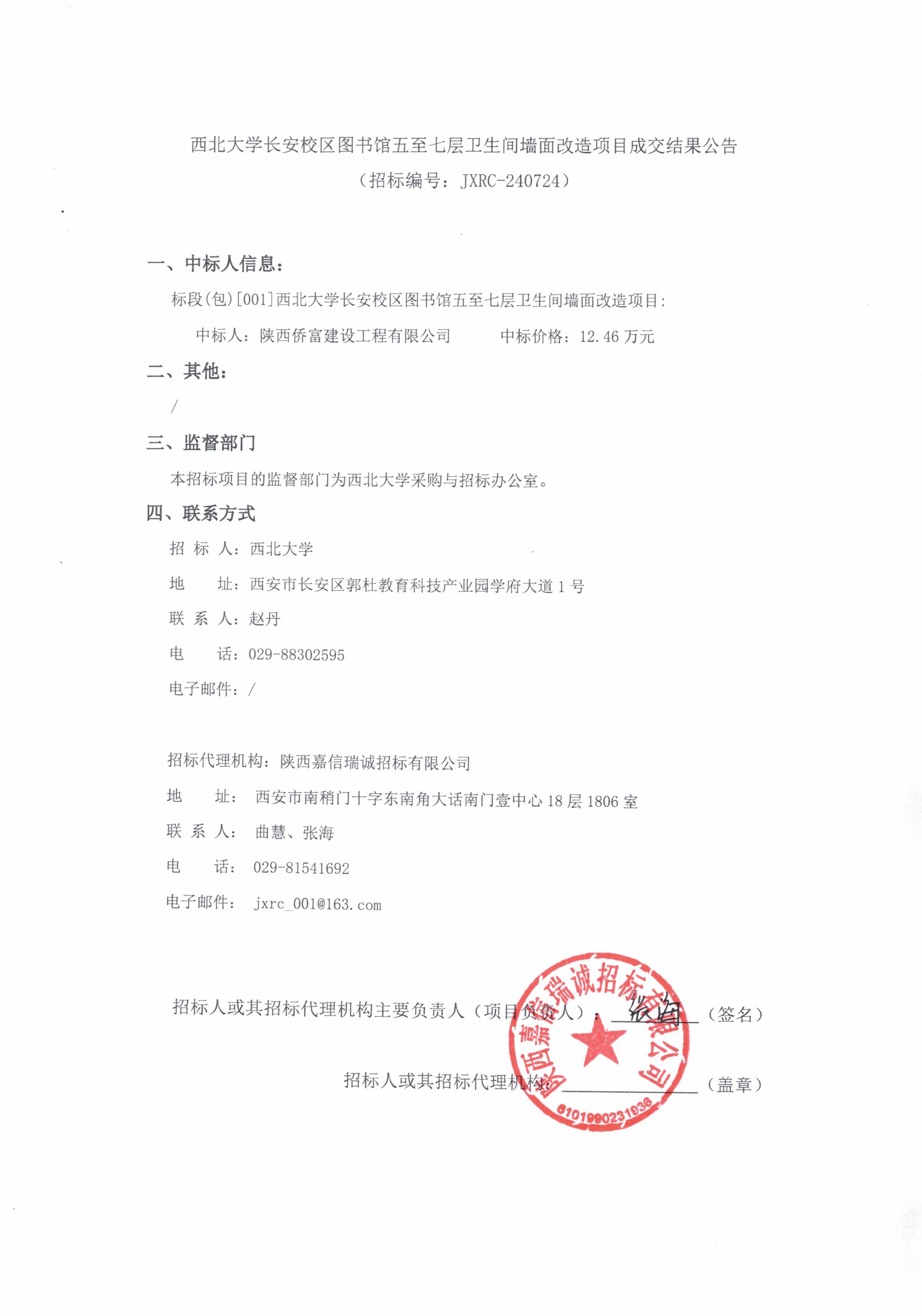 九游会在线登录官网长安校区图书馆五至七层卫生间墙面改造项目成交结果公告